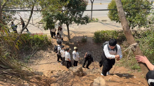 随后,学子们完成约10公里的“重走长征路”徒步研学,在沉浸式行走中体悟长征精神,传承“不怕牺牲、勇往直前、坚韧不拔、团结互助”的革命品格,将思政课堂从校园延伸至红色实地,让红色教育更具感染力与实效性。